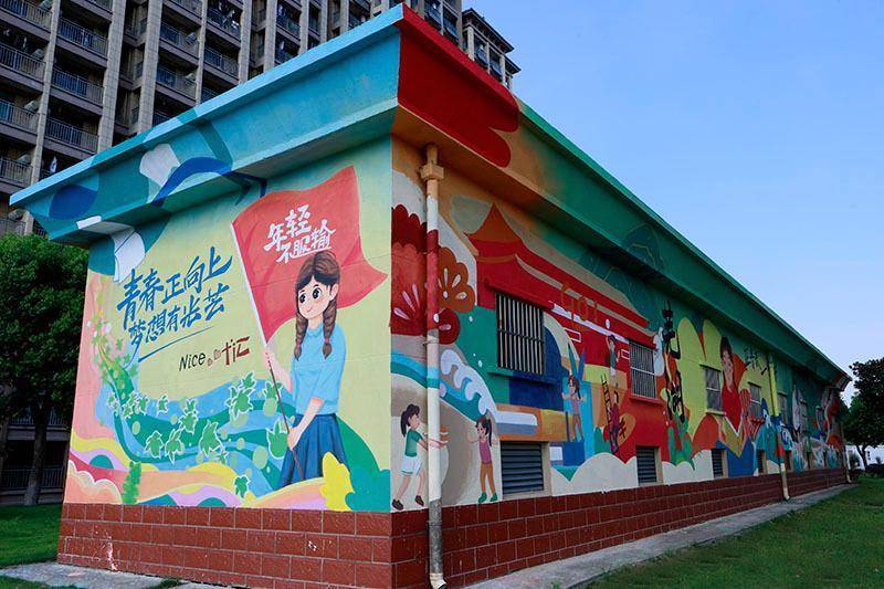 斑斓的墙体彩绘成为青年驿站的一道风景。弋江区委宣传部供图