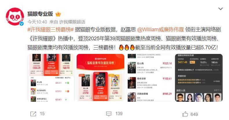 目前,《许我耀眼》的全端播放量已经突破10677万,云合市场占比突破40%,全端播放量集均破3000万,也就是说,这部剧的热度和关注度绝对是当前最高的。